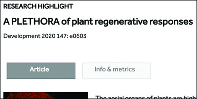 On the cover: Santuari et al. reveal how the PLT gradient regulates cell state by region-specific induction of cell proliferation genes and repression of differentiation. The cover image shows how PLT2 expression influences the boundary of meristem target gene expression domains at the root tip. Activation of ProHAN:3xvYFP expression in a transgenic root after 0, 6, and 24 h of DEX induction of PLT2-GR expressed under control of the constitutive 35S promoter. Ectopic induction is obvious at 6 and 24 h of transfer to DEX media from the enhanced expression of fluorescent protein throughout the root outside of the meristematic domain of endogenous PLT2 expression. This image series shows that PLT levels determine the proximal/shootward boundary of the target gene expression domain, consistent with a dose-dependent role in zonation.